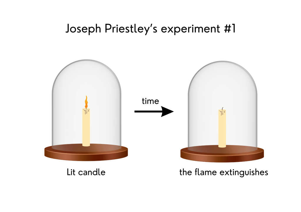 Representation of Joseph Priestley’s experiments with candles in 1771
