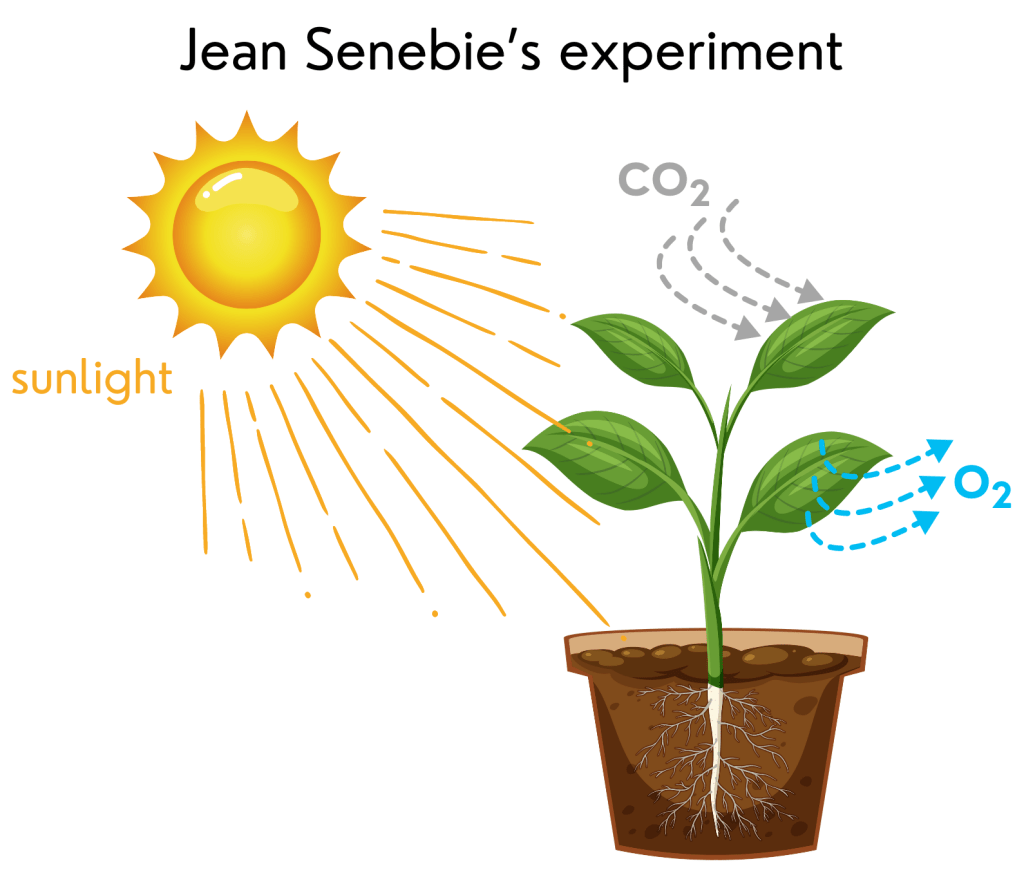 In 1796, Jean Senebier, a Swiss pastor, botanist (a scientist who studies plants), and naturalist (a scientist who studies nature), showed that plants consume carbon dioxide (CO2) from the air and release oxygen under sunlight. Lavoisier’s and Senebier’s experiments made Ingenhousz rethink his results. He concluded that plants use sunlight to split CO2 and use its carbon (C) to grow and release oxygen (O2) as waste.