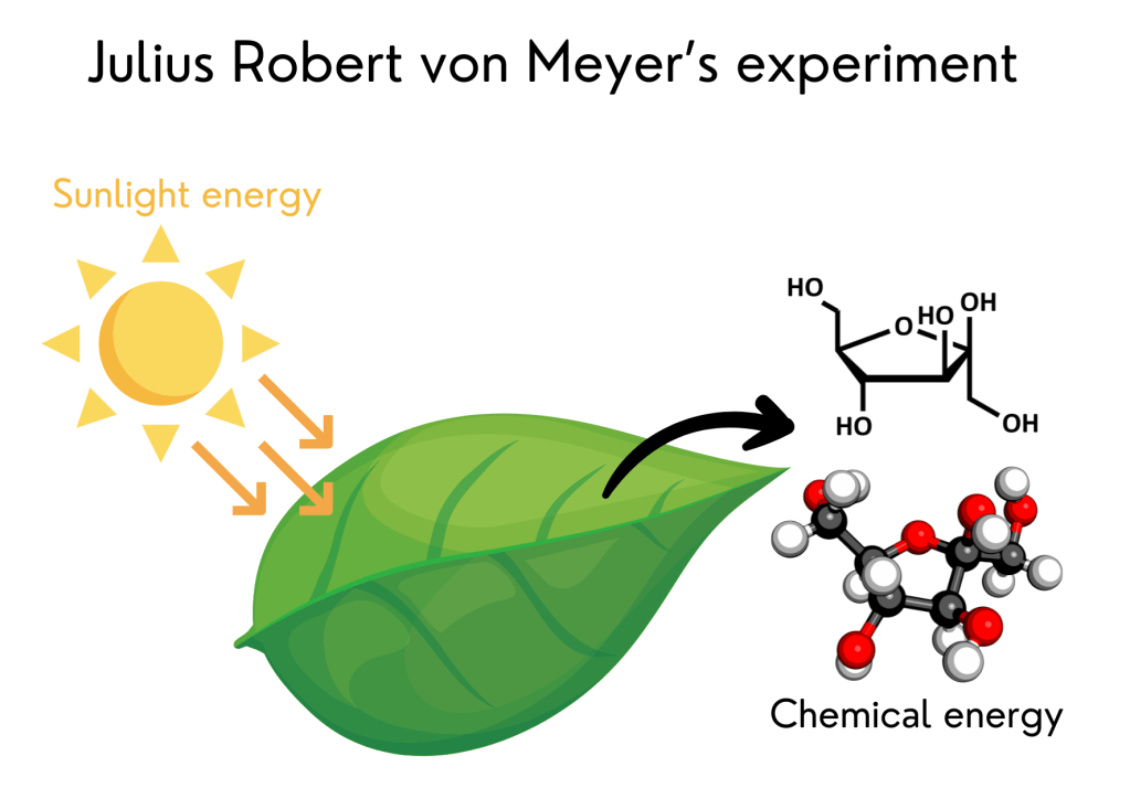 In 1845, the German physician and physicist Julius Robert von Mayer proposed that plants transform the energy from sunlight into another type of energy: chemical energy (more specifically sugars), which they use to grow.