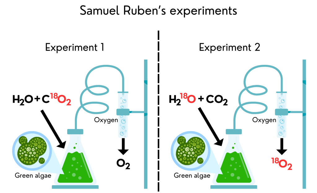 In science, any idea should be tested. Anyone can have an idea, but what makes it true are the results of very well-designed and easy-to-repeat experiments. Van Niel could be wrong, and oxygen could come from CO2. How would we know? Ten years after van Niel came up with his idea, another scientist, Samuel Ruben, tested it using radioactive water and radioactive CO2.